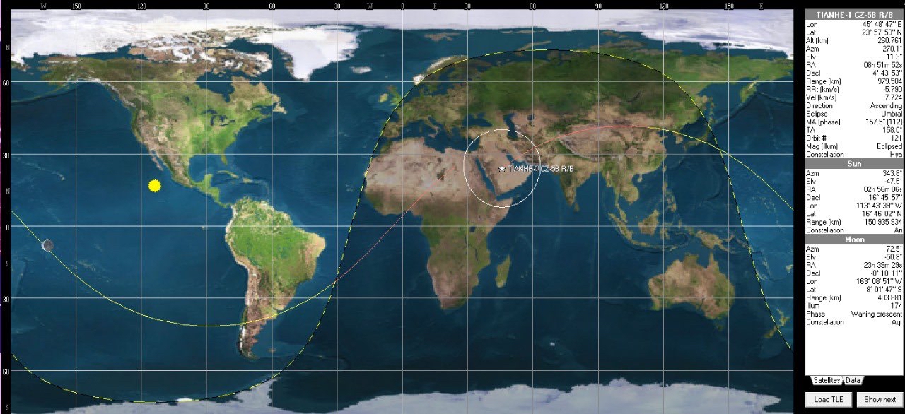 كشف مركز الفلك الدولي عن آخر تطورات الصاروخ الصيني الفضائي Long March 5B "لونج مارش 5 بي، وقال إن حطام الصاروخ الصيني سيمر هذه الليلة أربع مرات فوق الوطن العربي.
