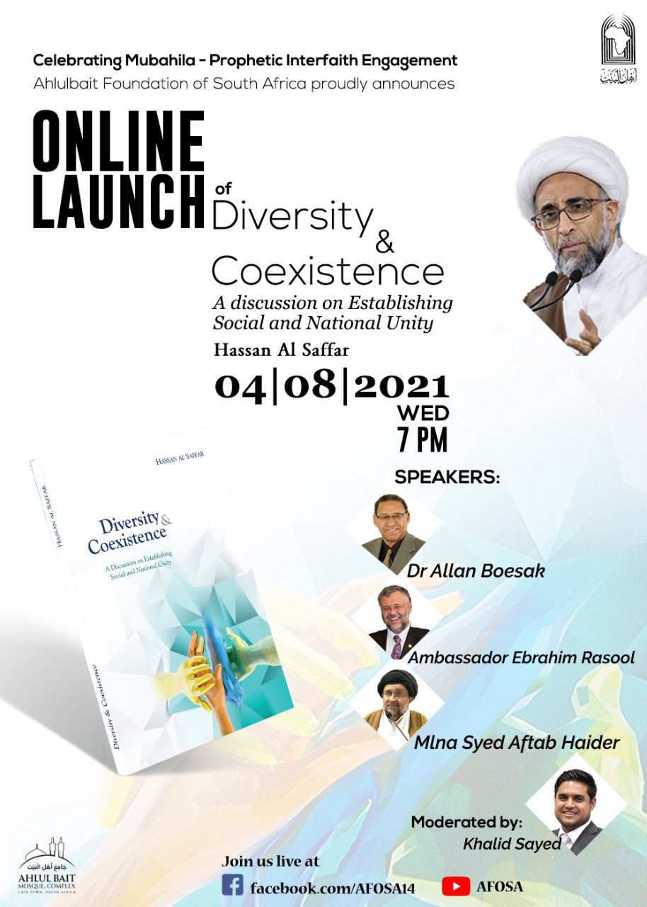 في جنوب أفريقيا، حفل تدشين ترجمة كتاب «التنوع والتعايش» لسماحة الشيخ حسن الصفار للغة الإنجليزية، بمشاركة عدد من الشخصيات والعلماء والمسؤولين.