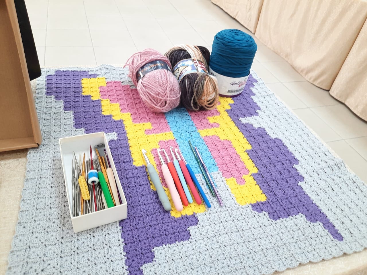 وتم تعريف المتدربات على أنواع الإبر والخيوط المستخدمة في الكروشيه كالقطن، الصوف الحرير، وأشارت المدربة إلى الإستخدامات المتنوعة لهذ الفن كصناعة المفارش، الأغطية، الملابس، الدمى، إكسسوارات المنزل، وغيرها.
