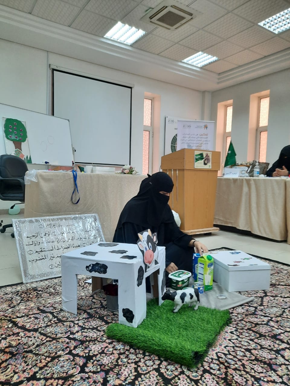 وقدمت عددًا من الأدوات التعليمية وطرق عرضها وكيفية تعزيز الطفل ليتمكن من الإستذكار وطرح ما تعلمه بطريقة محببة وجاذبة من خلال التطبيق العملي مع المتدربات للحلقة وشرح للأركان التعليمية مع التنوع في إستخدام الأدوات للمساهمة في تعليم الأطفال ولإثراء المادة التعليمية حيث تم التطبيق العملي مع المتدربات من خلال الحلقة لوحدة العائلة وطرق بداية افتتاح الدرس مع ضرورة التأكد من فهم الأطفال للمعارف قبل إغلاق الدرس والختام يكون بذكر نعم الله وتذكير الطفل بالقيم.