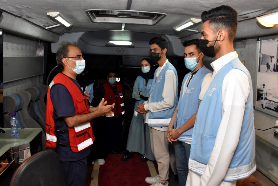عقد فرع هيئة الهلال الأحمر السعودي بالمنطقة الشرقية، بالتعاون مع مركز الملك عبدالعزيز الثقافي العالمي بالظهران «إثراء»، فعالية توعوية بحافلة المعرض التثقيفي لعدد من منسوبي إثراء، بمناسبة اليوم العالمي للإسعافات الأولية 2021م.