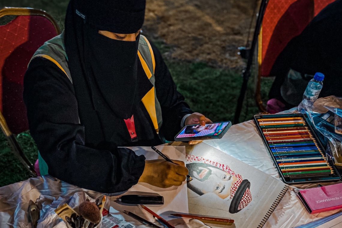 وأضافت المصورة الإعلامية ”زينب الأحمر“: حلقت بنا ريشة الفنانات وإبداعاتهم الحرفيين إلى المستقبل الجميل، والماضي، فكان إبداع بكل ركن وزاوية فهذا هو الطريق المشرق وللرؤية 2030م.