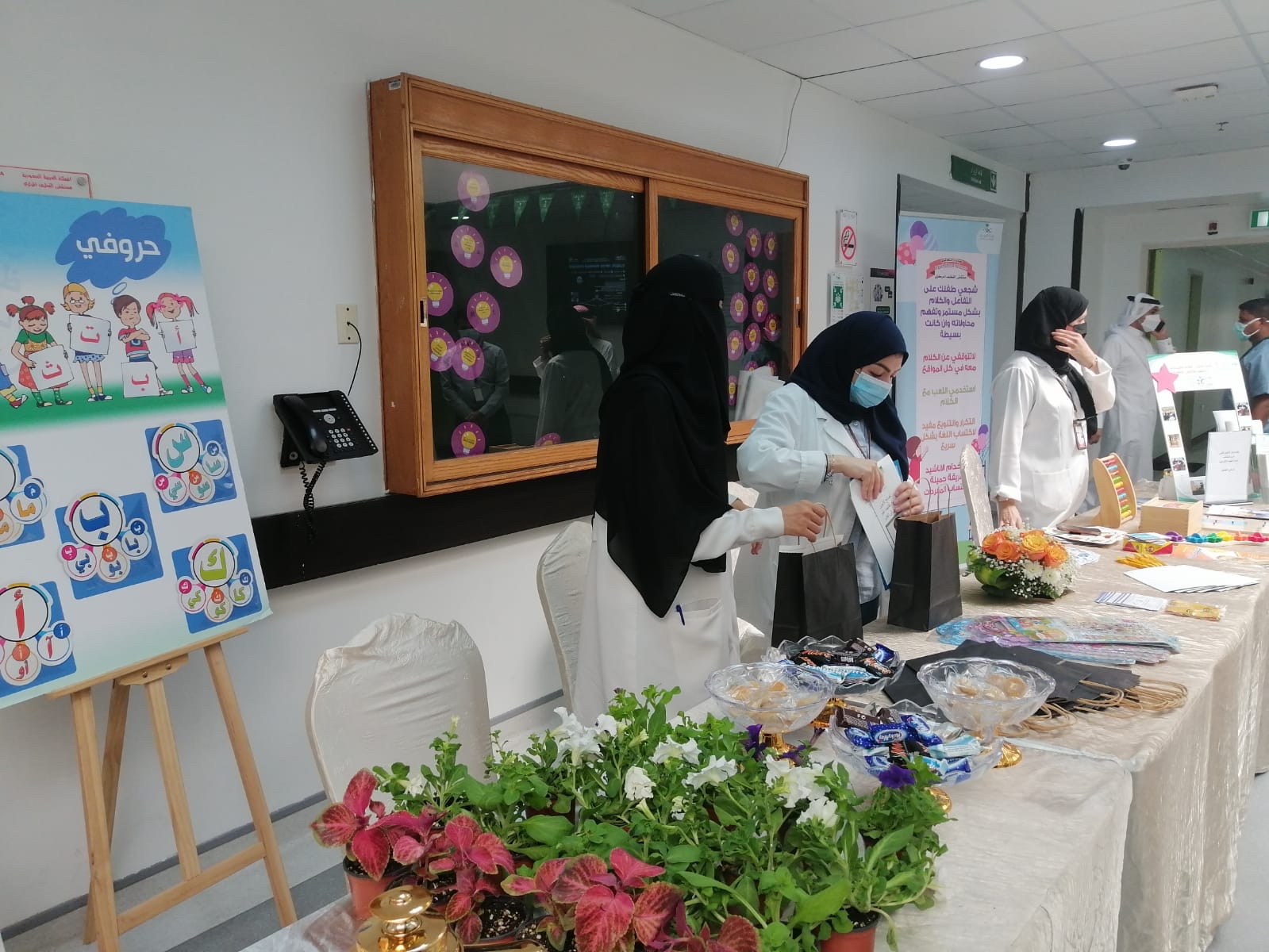 نظم مستشفى القطيف المركزي ومراكز الرعاية التابعة له، فعالية في بهو المستشفى، للتعريف باضطرابات النطق والتخاطب.