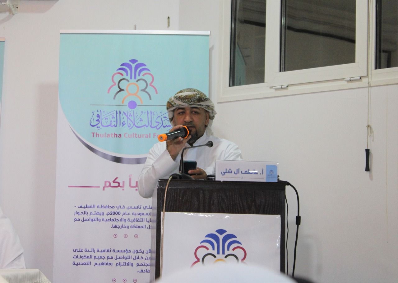 من ناحيته، بدأ المحاضر يوسف آل بريه حديثه بتعريف الموال لغة بإرجاع الكلمة لأصلها ”الموالي“ كاسم فاعل من الفعل الرباعي ”والى“ أو جمع كلمة ”مولى“ معنى المحب والصاحب.