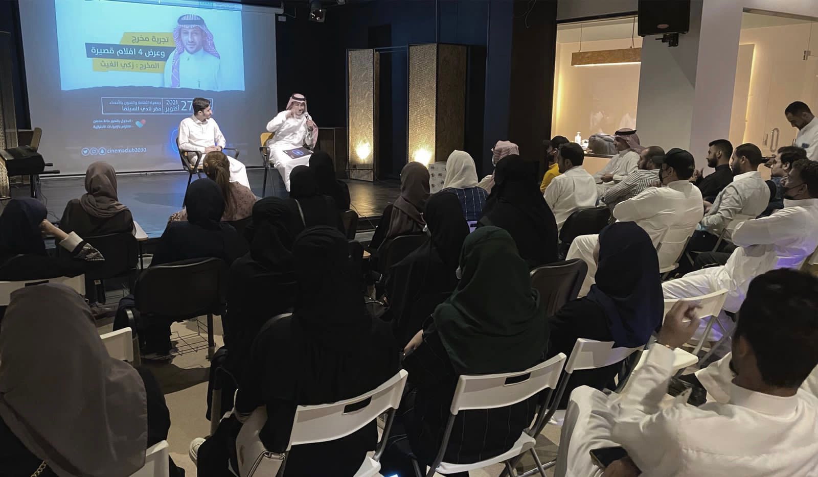 في أمسية بعنوان ”تجربة مخرج“، استضاف المخرج زكي الغيث، 4 أفلام، وهي ”فحم، فاطمة، فن صناعة الفخار، العربة“، وذلك ضمن جلسات الشاي التي ينظمها نادي السينما بجمعية الثقافة والفنون بالأحساء.