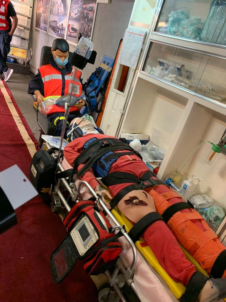 وصاحب الدورة حافلة المعرض التوعوي التثقيفي التي تحتوي على دمى تدريبية ونموذج للأجهزة الطبية الحديثة المستخدمة في العمل الاسعافي وشرح آلية عمل المسعفين بشكل ملموس؛ والذي كان له الأثر الإيجابي والممتع للمتدربين.