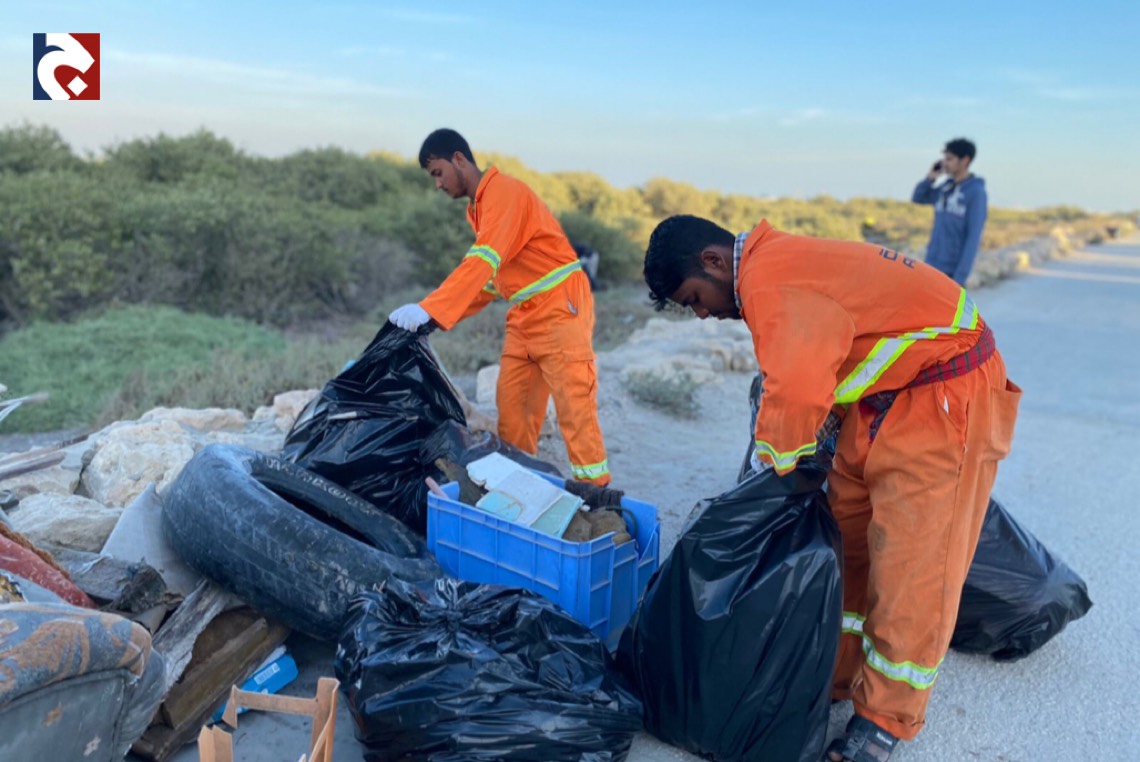 بالصور.. 93 متطوعا ينظفون شاطئ كورنيش سنابس
