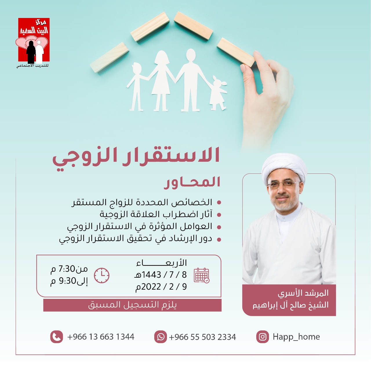 صفوى.. الشيخ آل إبراهيم يقدم «الاستقرار الزوجي» في «البيت السعيد»