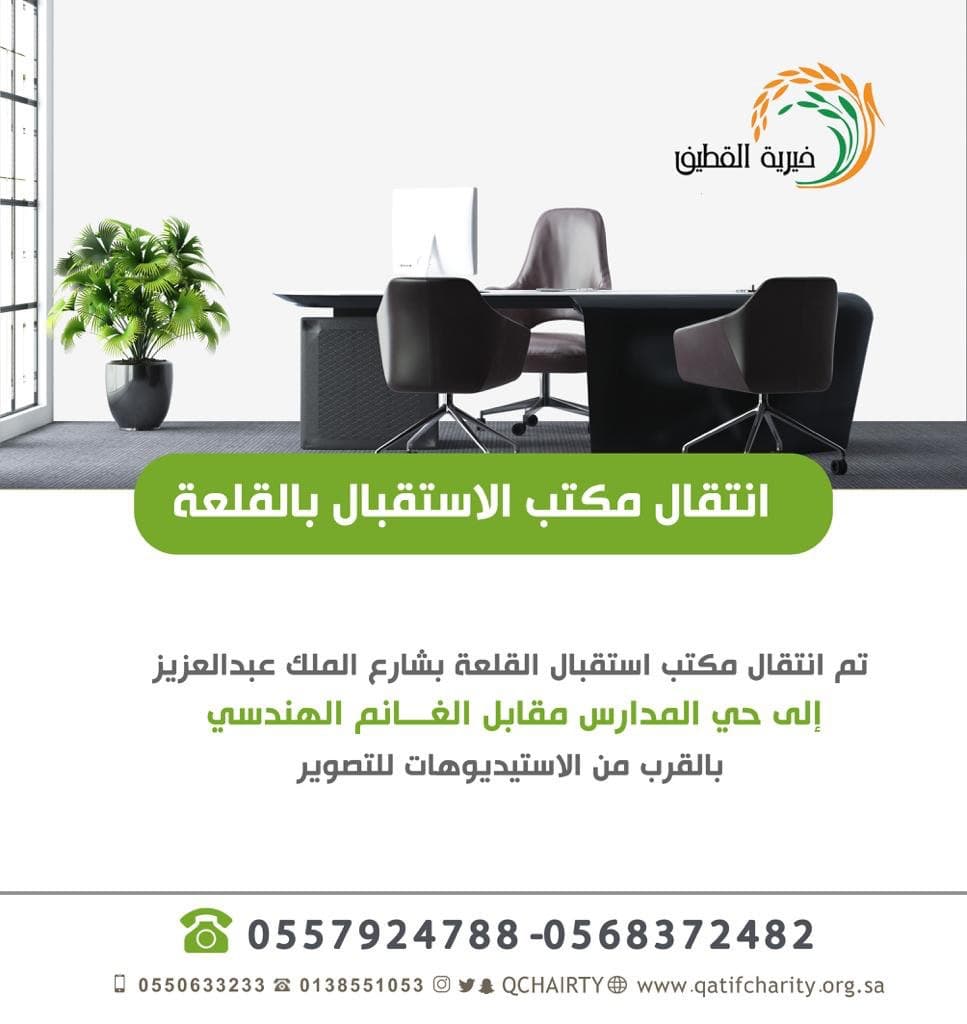أعلنت جمعية القطيف الخيرية عن انتقال مكتبها الواقع بحي القلعة على شارع الملك عبدالعزيز إلى حي المدارس بالقطيف.