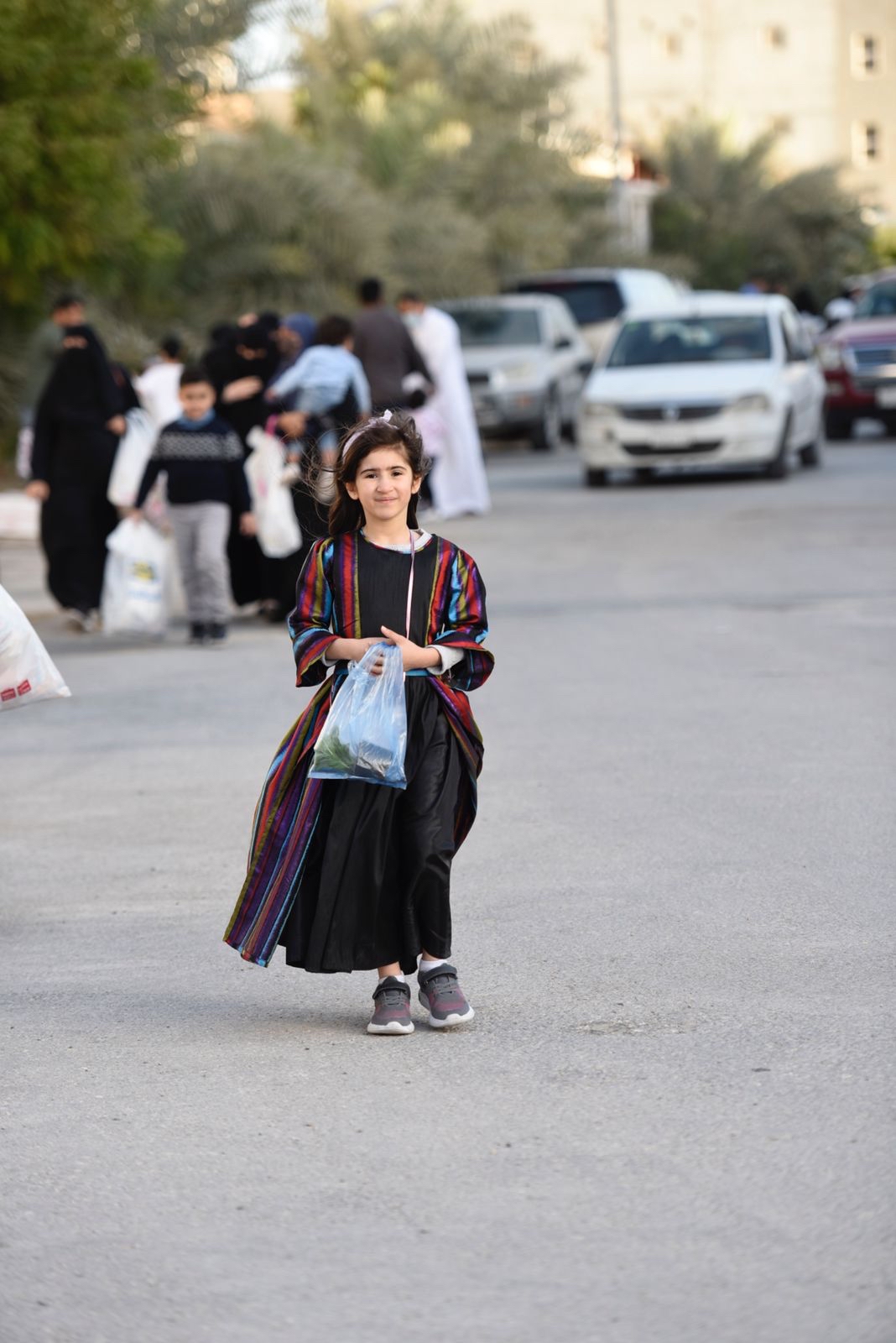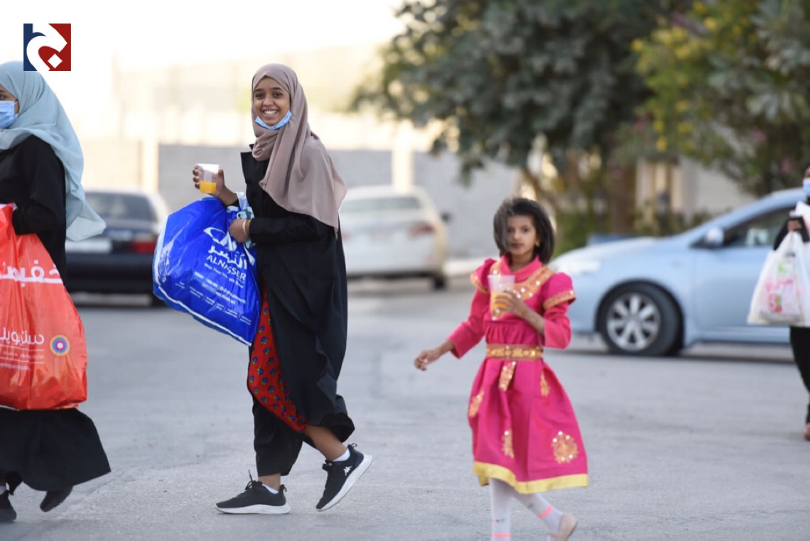 ورصدت ”جهينة الاخبارية“ حشود المحتفلين الذين غلب عليهم النساء والأطفال في أجمل حللهم وهم يتنقلون بين المنازل يتلقون الهدايا والحلويات.