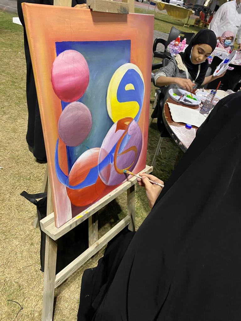 وتخلل الملتقى ركن لنادي الفنون التابع للجنة التنمية الاجتماعية حيث يستعرض الفنون المباشرة التراثية والتصوير والخط العربي.