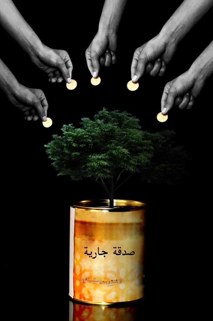عبارة ”صدقة جارية تنمو بالعطاء كالشجرة“.