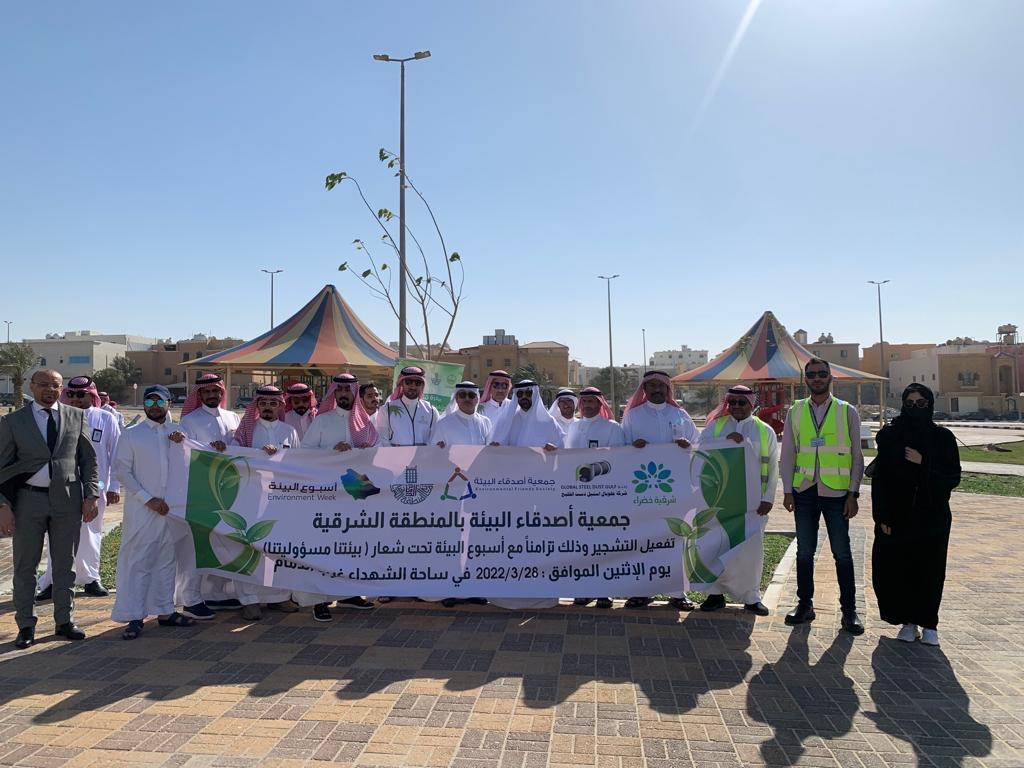 زرعت جمعية أصدقاء البيئة، 250 شتلة برية في ساحة الشهداء، تحت شعار ”بيئتنا مسؤوليتنا“، وذلك بالتعاون مع أمانة المنطقة الشرقية، وفرع وزارة البيئة والمياه والزراعة بالمنطقة الشرقية، وحضور رئيس بلدية غرب الدمام م. فايز الشمري، وعدد من المديرين والمسؤولين في الدوائر الحكومية على مستوى المنطقة.