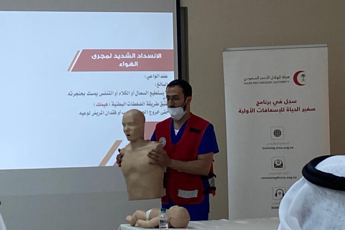 وتناول البرنامج التدريبي عدة محاور هامة، ومنها الإنعاش القلبي الرئوي، وتوقف التنفس، وانسداد مجرى الهواء، وحالات الإغماء، وكيفية التعامل مع الغصة عند الأطفال، وارتفاع مستوى سكر الدم وانخفاضه، وكيفية التعامل مع الإصابات الخفيفة والحروق السطحية.