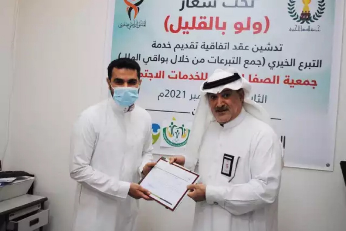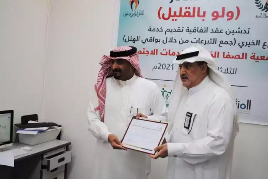 كانت جمعية الصفا الخيرية قد وقّعت خمسة عقود واتفاقيات مع مراكز تسوق للمشاركة في مبادرة ”ولو بالقليل“ وتوجيه المستهلكين للتبرع ببواقي الهللات أو الريالات من قيمة مشترياتهم لصالح الجمعية.