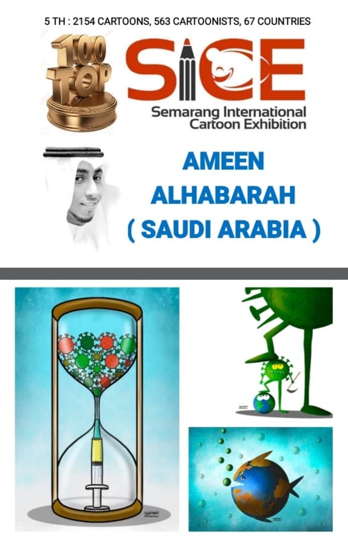 اختيرت أعمال فنان الكاريكاتير أمين الحبارة، ضمن أفضل 100 عمل في معرض سيمارانغ الدولي الخامس للكاريكاتير في إندونيسيا الذي تنظمه «SICE» حول موضوع التطعيم ضد كوفيد 19 والحياة بعد الوباء.