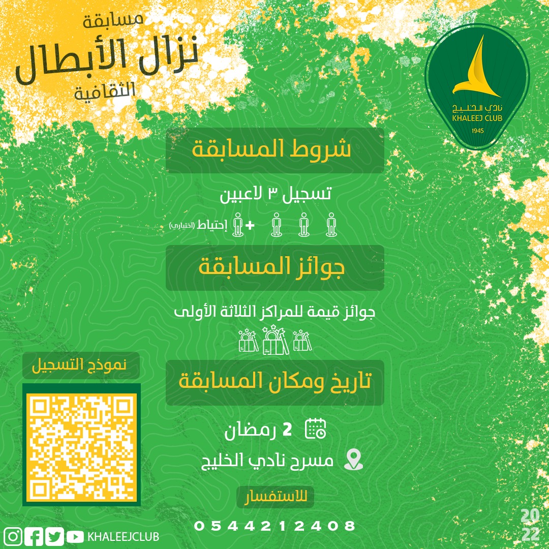 أطلق نادي الخليج مسابقة نزال الأبطال الثقافية والتي تتكون من عدة فرق تتنافس في ما بينها للفوز بالمركز الأول والثاني والثالث.