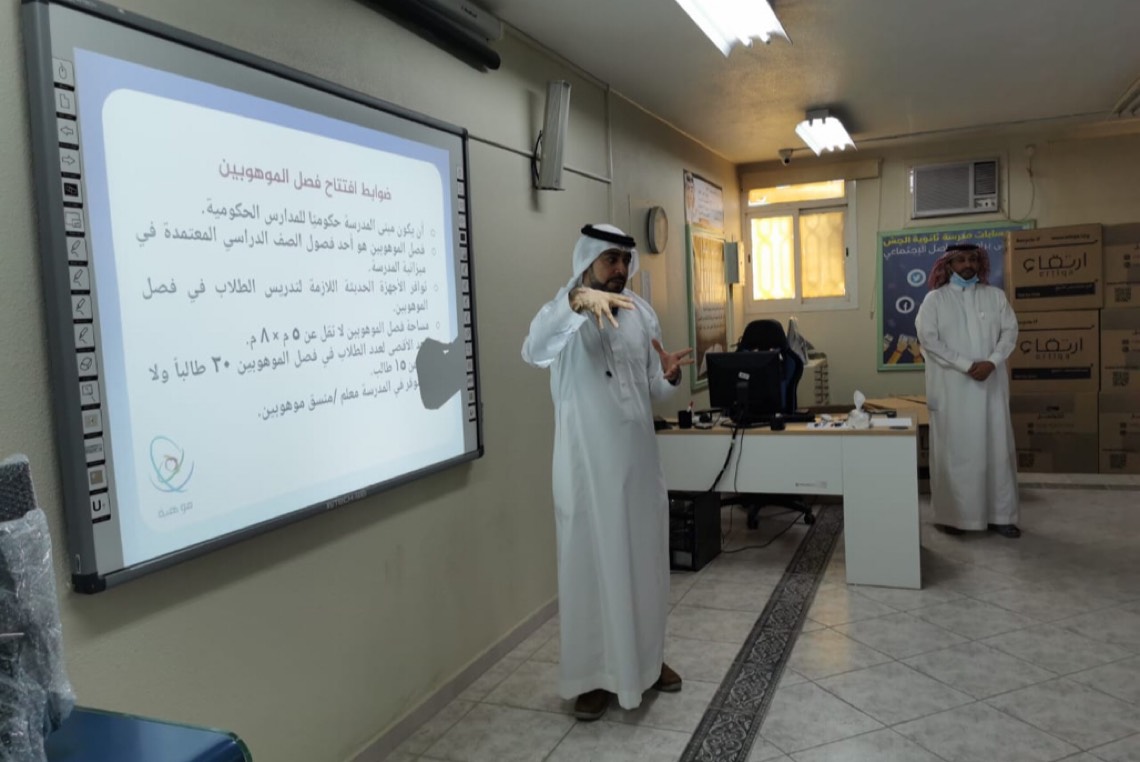 وتزامنا مع الاحتفال قدم منسق الموهوبين أمين السعيدي عرضا تقدميا للتعريف بصفوف الموهبة وذلك لطلاب مدارس المرحلة المتوسطة المستضافة.