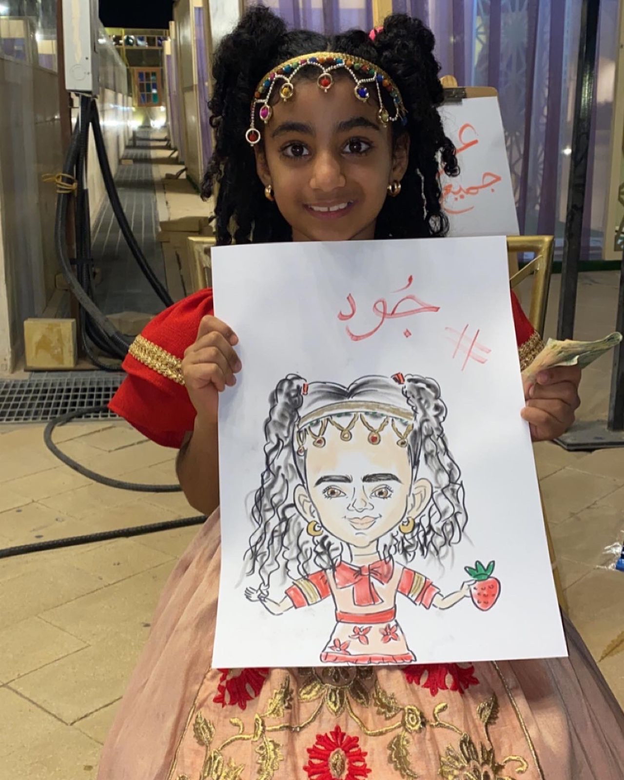 رسم الفنان الكاريكاتيري مصطفى الأسود، أكثر من 100 زائر في ملتقى الرامس ببلدة العوامية بمحافظة القطيف.