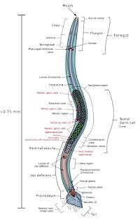 قام الباحثون بتعليم الديدان تجنب سلالة بكتيريا معدية تجعلها مريضة وذلك بالتعرف عليها من الرائحة. لكن بعد ساعة نسيت الديدان هذا السلوك. ثم قام الباحثون بتحليل نشاط أدمغة هذه الديدان والجينات المعبرة[6] في أجهزتها العصبية.