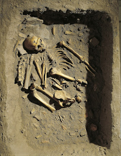 الصورة: محاكاة قبر إنسان نياندرتال في لا شابيل أو ساينتس، فرنسا