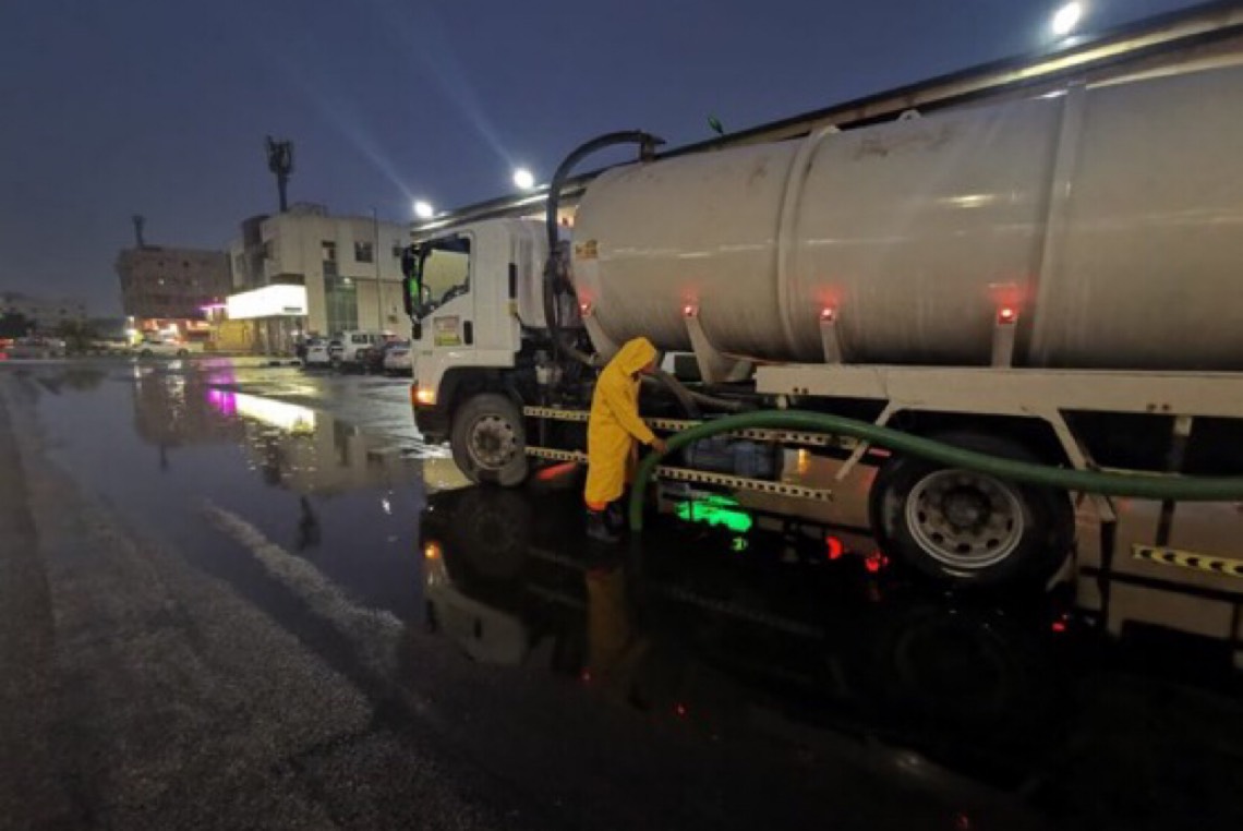 بالصور.. سحب تجمعات مياه الأمطار في القطيف