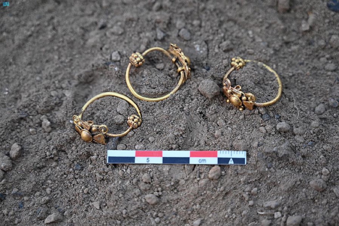 وأضافت أنه جرى الكشف عن ثلاثة خواتم من الذهب عليها من الأعلى زخارف على شكل فراشة وجميعها تأخذ نفس الشكل والمقاس، وهي من المعثورات الأثرية التي لم يتم الكشف عنها مسبقاً في موقع الأخدود خلال المشاريع العلمية السابقة.