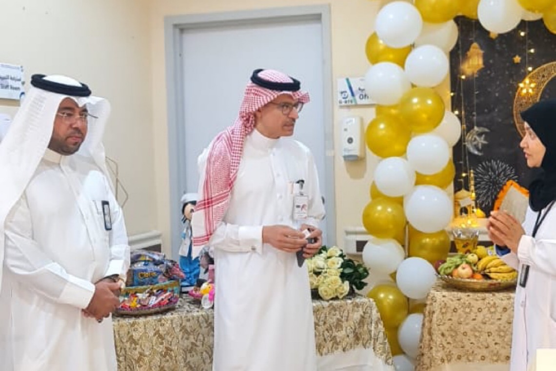 شهد مستشفى الأمير محمد بن فهد العام، رسم السعادة على المرضى، بتوزيع الورود وبعض الهدايا، بمناسبة ”القرقيعان“.