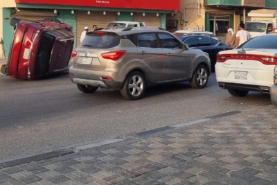 إصابة سائق في حادث إنقلاب سيارة على طريق احد بتاروت