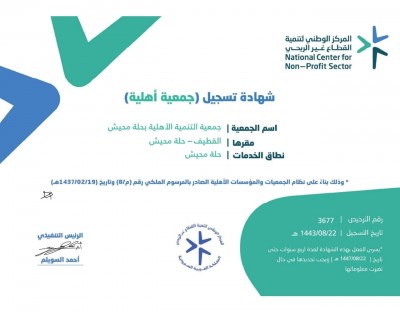 نجحت تنمية لجنة التنمية الأهلية بحلة محيش في التحول لجمعية أهلية لتصبح جمعية التنمية الأهلية بحلة محيش. وأصبحت أول جمعية تنمية أهلية بالقطيف وأول لجنة تصدر لها شهادة التحول من المركز الوطني لتنمية القطاع غير الربحي. ... |