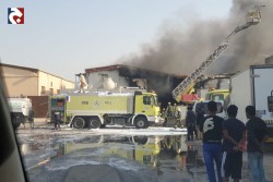 بالصور.. حريق يلتهم ورشة بصناعية تاروت