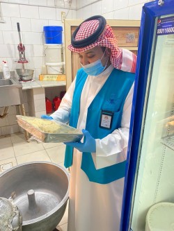 رصد مركز أبحاث الثروة السمكية بمحافظة القطيف، التابع لفرع وزارة البيئة والمياه والزراعة بالمنطقة الشرقية، 203 كيلو جرامات من الأحياء المائية الفاسدة، منها 114 كيلو أسماك متنوعة، و19 كيلو من الروبيان، و35 كيلو من القبقب، إضافةً إلى 35 كيلو من الخثاق، بسبب عرض أسماك فاسدة، أو ظهور علامات الفساد عليها، أو مجهولة المصدر، فيما صادر المركز أكثر من 72 قطعة من أدوات التقطيع والتجهيز، غير صالحة للاستخدام. ونفذ المركز، حملة رقابية... |
