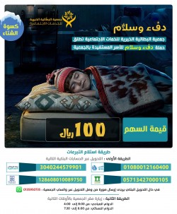 اطلقت جمعية البطالية الخيرية للخدمات الاجتماعية بمحافظة الأحساء حملة «دفء وسلام»، للتبرع بكسوة الشتاء للأسر المستفيدة من الجمعية. وتبلغ قيمة السهم الواحد 100 ريال فقط. وأوضحت طرق التبرع للراغبين، وهي زيارة مقر الجمعية في الأوقات التالية: الساعة 8 صباحا - الساعة 4 مساء الساعة 6 مساء - الساعة 7:30 مساء أو التحويل عبر الحسابات البنكية الخاصة بالجمعية. للتواصل عبر الواتساب: 0135950735... |