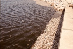 بالصور.. نفوق الأسماك في بحيرة سيهات