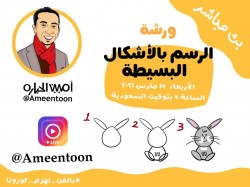 يقدم فنان الكاريكاتير أمين الحباره ورشة الرسم بالأشكال البسيطة البث المباشر على انستقرام | https://instagram.com/ameentoon الزمان: يوم الأربعاء 17 مارس الوقت: 7:00 مساءً... |