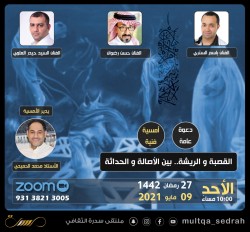 يقيم ملتقى سدرة الثقافي مساء اليوم الأحد أمسية فنية بعنوان ”القصبة والريشة.. بين الأصالة والحداثة“ وذلك عبر منصة زووم. وتستضيف الأمسية الفنانين باسم الستري، حسن رضوان والسيد حيدر العلوي، ويدير الأمسية الناقد الأدبي محمد الحميدي الزمان: مساء يوم الأحد 27 رمضان - 9 مايو الوقت: الساعة العاشرة مساء سيكون بث عبرة منصة زووم: 93138213005... |