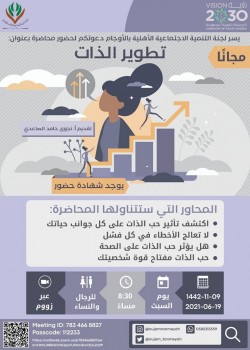 عبر زووم..تنمية الأوجام تنظم محاضرة «تطوير الذات»