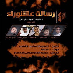 الليلة.. الملتقى الخطابي الحسيني «رسالة عاشوراء 8» بأم الحمام