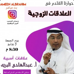 يبث حساب أنشطة العائلة بالدمام على ”الانستجرام“ لقاء حول العلاقة الزوجية بين المودة والتعايش في زمن تفضيل البقاء بالمنزل. ويقدم اللقاء الذي ينظم بالتعاون مع مركز رفاه للارشاد الأسري ”عن بُعد“، دكتور علم نفس التعلم وعضو هيئة التدريس بكلية التربية في الدمام سابقا مهدي الطاهر، ويحاوره فؤاد الحمادة. الزمان: يوم السبت 5 ذو القعدة. الوقت: الساعة 8:30 مساء. حساب الانستجرام: family.dam ... |