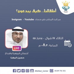 ينظم مركز مشكاة للتنمية البشرية محاضرة «أطفالنا.. كيف يبدعون؟» مع أخصائي الموهبة والإبداع حسين المهنا عبر البث المباشر على منصات youtube - Instagram. الزمان: يوم الثلاثاء 17 شوال - 9 يونيو الوقت: الثامنة والنصف مساءً للمتابعة عبر روابط البث المباشر: اليوتيوب: https://youtu.be/T3STo0xf-sY الانستقرام: ... |