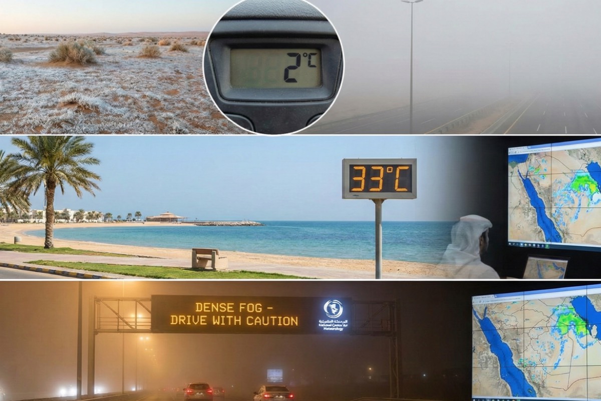 وأطلق المركز تحذيرات عاجلة لقائدي المركبات وسالكي الطرق السريعة من موجات ضبابية كثيفة تحجب الرؤية الأفقية، تتركز في المنطقة الشرقية وتمتد لتغطي أجزاء حيوية من الرياض، والحدود الشمالية، والجوف، وتبوك.