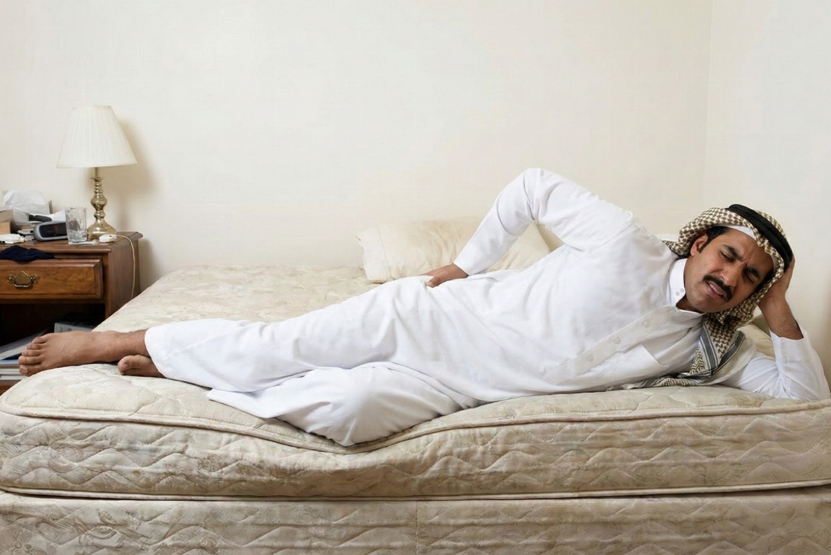 وأوضح الخضيري أن استخدام المراتب اللينة يؤدي إلى انحناء العمود الفقري وتضاغط الفقرات أثناء النوم، مما يستدعي استبدالها بفراش صلب أو النوم على أسطح قاسية نسبيًا لضمان استقامة الظهر وسلامته.