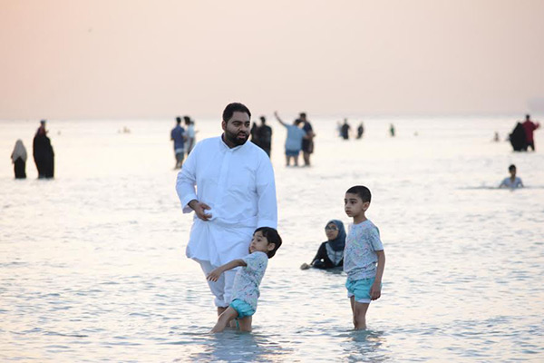 وتبدأ الاعداد بالتقاطر على الموقع قبل ساعة تقريبا من موعد طلوع الشمس وساعتين من غروبها، حيث يتحول الموقع الى منطقة تغص باعداد كبيرة من الاطفال والنساء والرجال، بهدف الاستمتاع جزء من الوقت بجوار البحر.