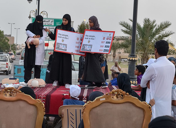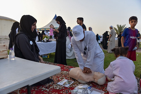 وتضمنت الفعاليات على ورشة للمسعف الصغير والتعريف بالإسعافات الأولية ونوعها وكيفية التعامل معها أشرف عليه 4 ممرضات متطوعات وهن