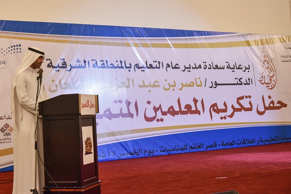 وفي كلمته، عبر المدير العام للتعليم بالمنطقة الشرقية عن تشرفه أن يكون في هذا المحفل، مؤكدا على شعوره بالسعادة؛ لتكريم المعلمين المتميزين، لأن هذه المهنة تستحق أن نفخر بها.