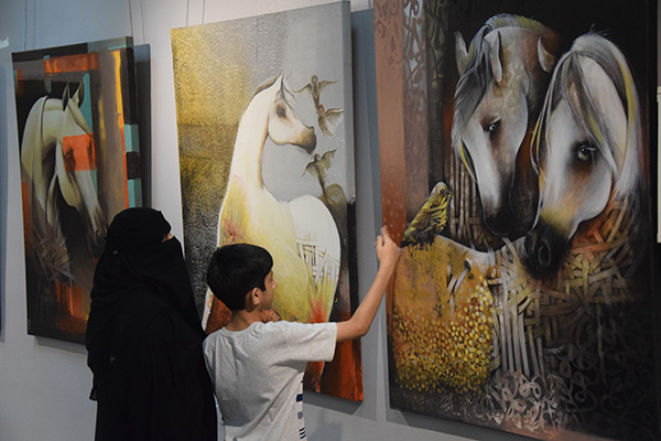 ولفتت الى ان ذلك كاد يهزمها احيانا بما اطلقت عليه ”هزائم تشكيلية“، منوهة انها قد تضطر لإعادة رسم اللوحة عدة مرات لتستعيد علاقة الصداقة مع الخيل لتشعر انها حاضرة فيها.