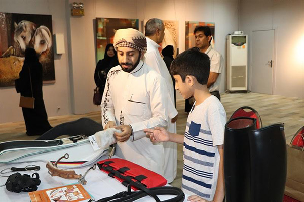 وعلى هامش المعرض شارك هاني الرشيدان من الاحساء بعرض مجموعة أدوات خاصة بالخيل، وتعريف الحضور على الخيل وادوات ركوبه والاهتمام به وكيفية ركوبه وانواعه وما لذي يحتاجه من تلك الادوات.