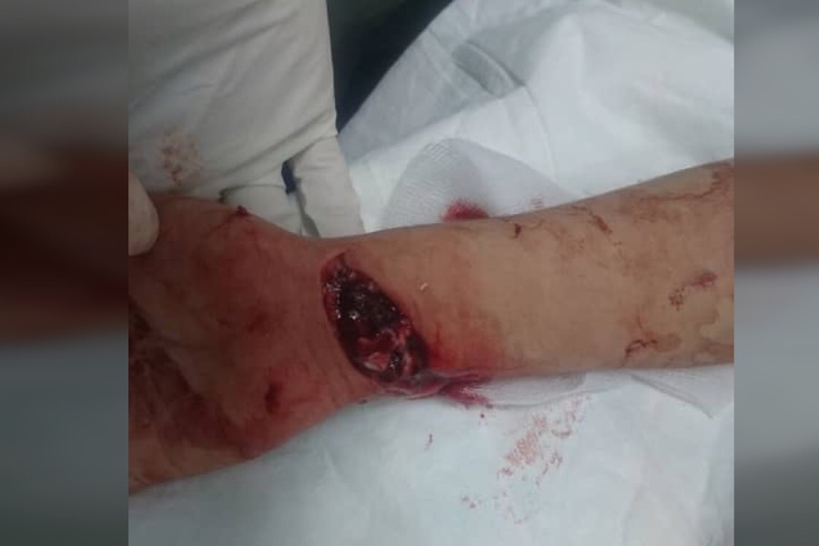 وواضح د. كامل البوري إنه تم إصلاح جميع الاوتار والأعصاب المصابة جراحيا مع وضع دعامة خارجية مؤقتة واعطي المريض متابعة مستمرة في العيادات الخارجية