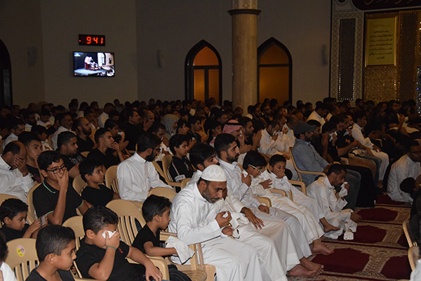 واتشحت محيطات الاماكن الدينية في مدن وبلدات محافظة القطيف بالسواد وارتفعت الرايات الملونة واللافتات العزائية في الشوارع والأزقة التي تعبرها مسيرات العزاء الشبابية.
