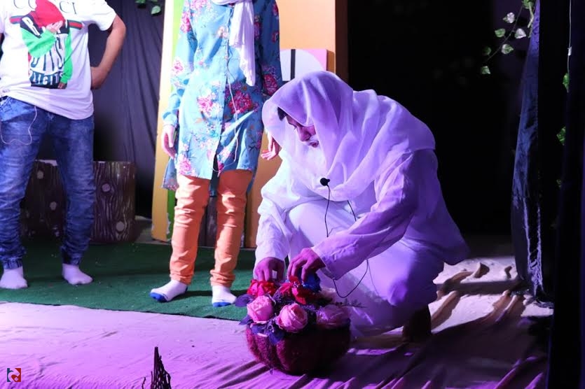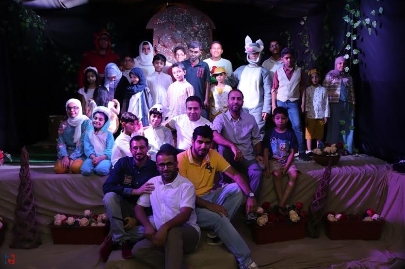 وذكر أن بعض الممثلين لأول مرة يقفون على المسرح، بالرغم من صعوبة التنفيذ حيث كان النص يقدم باللغة العربية الفصحى وفي «بروڤات» لم تتجاوز عدة أشهر، مقدمًا شكره لأهالي الممثلين على متابعتهم المستمرة حتى خلال ليالي شهر رمضان المبارك وتشجيعهم لأولادهم بتقديم أداء مميز وهادف.